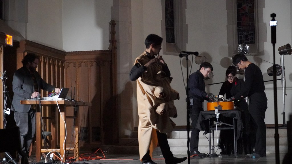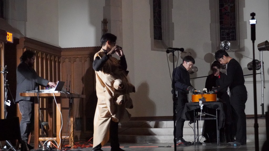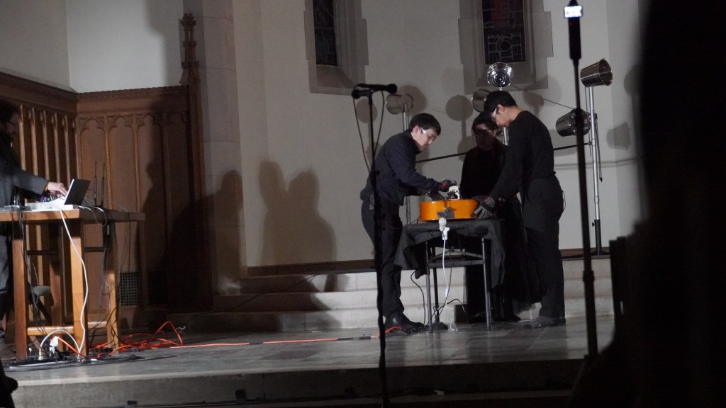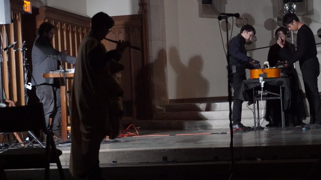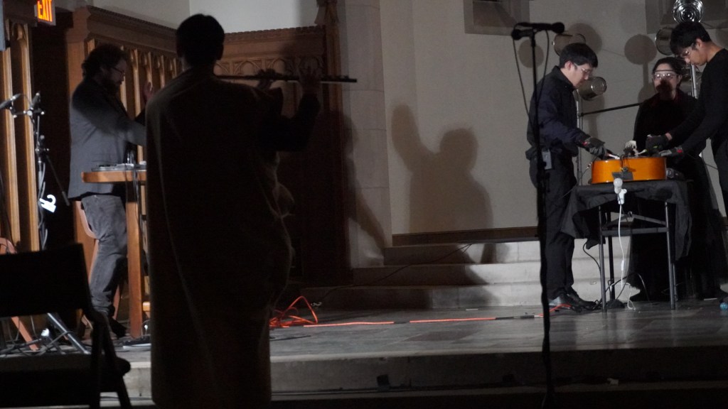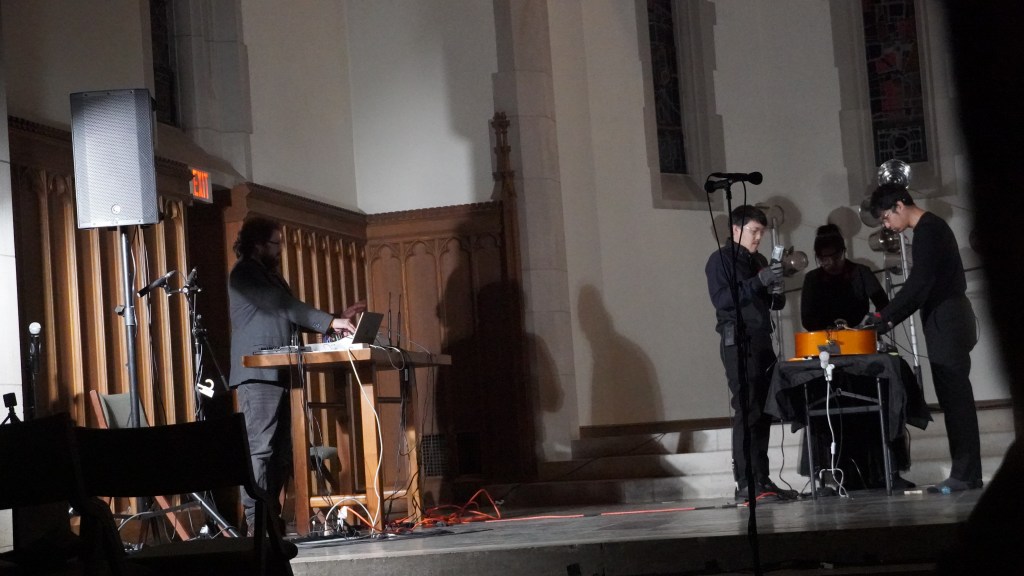 The composer will also be a part of this piece but will mostly be responsible for processing, sound reinforcement and electronics.