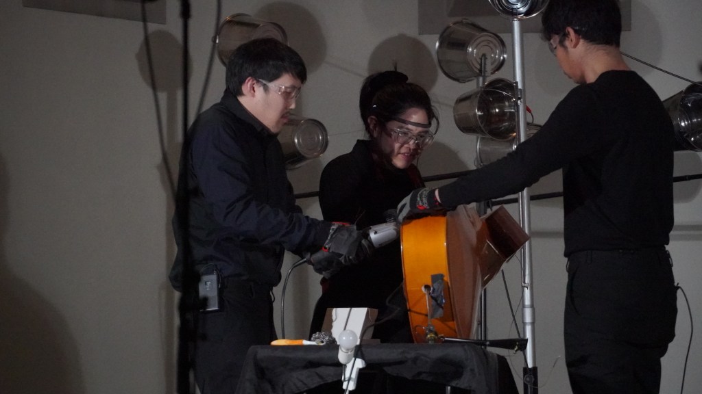 While not required for the successful performance of this piece, it is highly encouraged to end the performance by using tunable oscillating saws to surgically destroy the instrument.