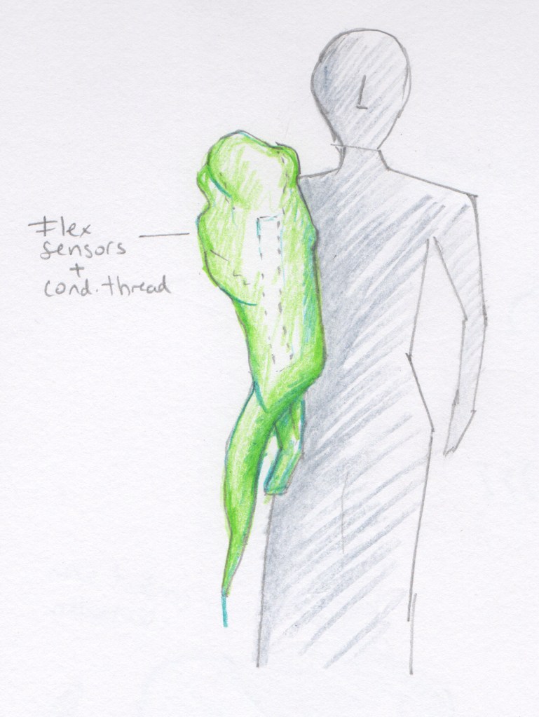 At the core of the project will be sensor-embedded garments designed for up to six ensemble members. Each garment will integrate various sensors (flex, ultrasonic, skin surface voltage, EEG), connected to ESP32 microcontrollers powered by battery packs, enabling complete freedom of movement during performance. Data from these sensors will be transmitted wirelessly to custom-designed hardware and software that will control purpose-built electromechanical sculptures, modified electric guitars and virtual reality environments.