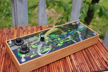 Another dirge from the realm of vsls for your entertainment and somber reflection. More on that: for anyone just tuning in, I build most of the instruments that make my sounds, most of which are numbered in the succession of the order they were created in. Number 1 was made in a yurt in Colorado in 2007. At the moment, we’re floating somewhere around Number 54 or so – or something like that. I’m doing my best to keep on track of documentation, but sometimes one or two slip through the cracks – especially when I’m chasing a deadline and building for others. And even more so for the early models when I wasn’t thinking about prestige or my instruments being some sort of viable art form. Legacy only goes so far when you’re broke. But then there’s the instruments that have stuck with me for a second and then some. Number 8/20 is one of those. I’ll be brief considering there’s full build reports on both, but here’s a quick recap. Number 8 was born during my time co-helming The Golden Trapperkeeper Lodge in San Francisco in 2008. The original intention was to build it in exchange for a quick buck to pay a late student loan bill, but since I was still new to building and didn’t have a reputation quite yet, there were no biters. So instead of paying the bills, it was incorporated into my live rig with the Pink Canoes, which was the band I was playing in at the time. Two years later, looking to up my game and consolidate the electronics, I rebuilt Number 8 as Number 20, largely using the same circuit, but upgrading the enclosure and interface. Four years later, I upgraded Number 20 again, swapping out the machine screws for 1/8” jacks to make my instruments a little more baby-friendly. In 2016, said instrument was incorporated into the Sound System (the silly name I gave the big metal box that housed my performance rig at that time), took a trip to England and played on a handful of shows and recordings until early 2018 when I decided that after a decade of use, it was time to put it out to pasture. Not to say its broken. If anything, it was an act of preservation – the circuitry was originally wired point-to-point through a sheet of plexiglass and some of the connections were beginning to get loose. Not wanting to rebuild the instrument from the ground up when I upgraded everything in 2015 or so, I applied a coat of hot glue to the circuit to keep things in place and at this point, while everything is still working, travel’s not doing anyone any favors and any attempted repairs would probably destroy the circuit – so it goes. So the instrument gained a gallery hook on the back and joins the hall of fame along with the other retired instruments from the menagerie. One day I’ll have an art show of these guys. In the meantime, they make some pretty good wall candy.