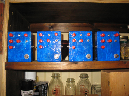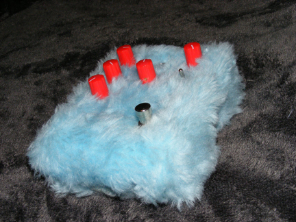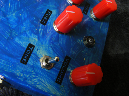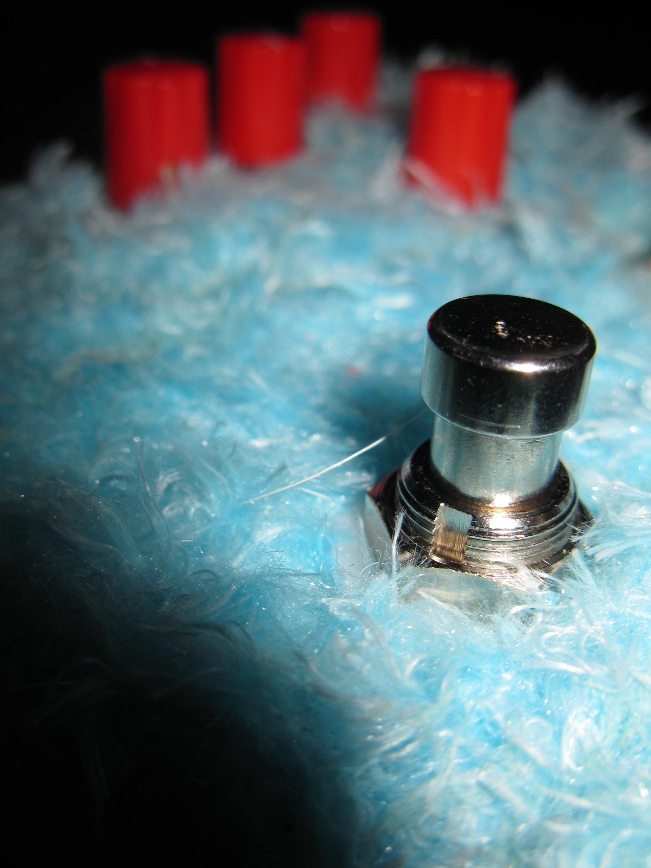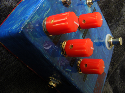 Electronically, this box is pretty much identical to your average 24, albeit with a different skin on the outside; formulated primarily to continue working the fur angle, as well as offer my wares in places other than my own site without running the risk of providing competition for myself. An interesting side-note for this one regards the availability of faux fur in sub-rural communities. Unlike San Francisco whose drag community necessitates the availability of nearly any fashion choice that could be considered ostentatious and Costa Rica, where a portion of society still takes pride in making their own clothes, Upstate New York… uhm, yeah, not so much of either – that I know of, at least. Either way, the availability of blue fur, not so much. As horrible as it sounds, in order to gain enough fur to cover this pedal, I uhm well, I skinned a plush Easter Bunny. I’m not exactly proud of this, but eh, maybe one day I’ll sew said rabbits face onto some sort of 3 meter long plush Bolivian Sand-Worm recreation or something – we have the technology…