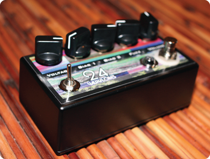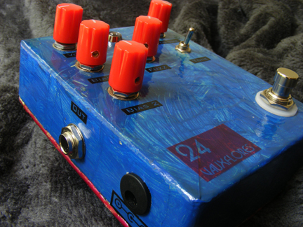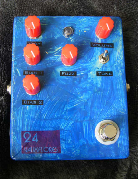 Number 24 is a high-gain three-transistor fuzz that’s similar to several other boutique fuzz pedals on the market, but designed to be easily produced using locally-sourced materials. But wait – locally-sourced materials – like, hobbyist grade? Aren’t high-end boutiques supposed to tout obscure components and arcane combinations of rare Soviet-grade tank electronics and audio-grade flux-capacitors? Sure, yeah, sometimes, if they’re available. Do these combinations change a circuit’s sound from commercial blandness to some sort of creamy, psychedelic tone wonderment? Eh, why not. Are they necessary to produce an extremely-versatile unit capable of several unique tones housed in a single box? In this case, not so much. Allow me to elaborate.
