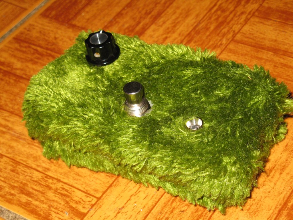 The Platano Oro – a hybrid of a Platano Verde and a Gold Standard in Green Fur livery. Built in response to a brief stint of viral attention when one of my other fur-covered pedals was mentioned in a feature on guitar pedals on a regional NPR station.