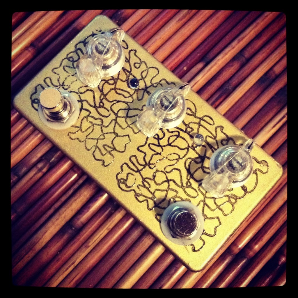 The Platano Verde was a tropic-inspired fuzz that invokes vintage Latin psychedelia with a modern edge that I offered as a production build from 2012 until 2017. Originally intended to be a one-knob fuzz, a tone knob was eventually added for flexibility. Featuring a streamlined interface and artwork by Costa Rican artist Paulina Velazquez-Solis, the Platano Verde’s design was derived from schematics taken from Brazilian electronics magazines from the 1970’s, adapted to best reflect it’s psychedelic roots, yet also provide a unique voice that’s surprisingly versatile. Case in point; try using a slide with this guy – in the middle of an industrial metal jam. As a heads up, it also sounds amazing on violin, not to mention contemporary Latin psychedelia. It also managed to work well for Americana, bluegrass and roots, as reported by some players further down the stream.